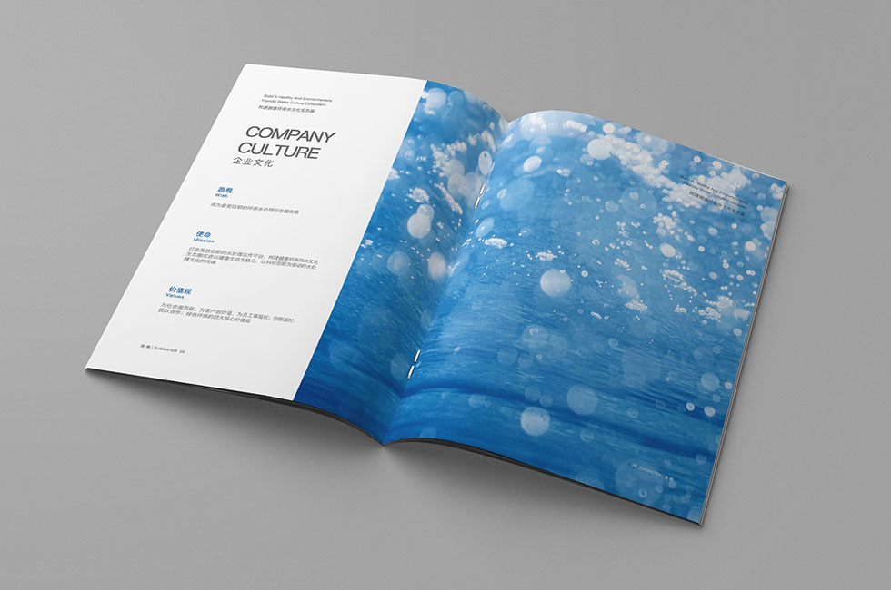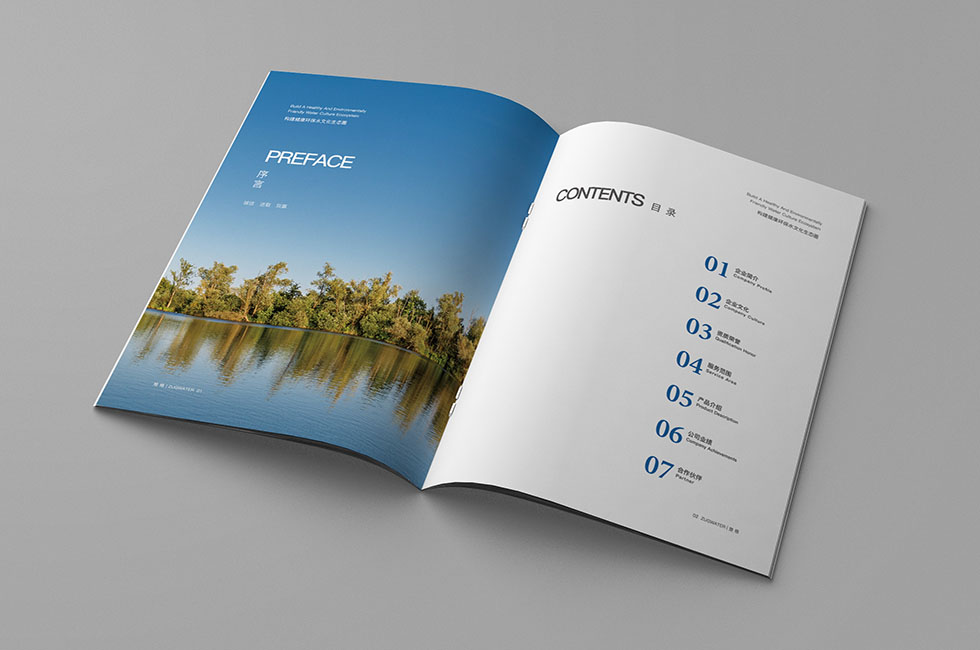 項目背景:楚格是以水處理工程設(shè)計與施工、水處理技術(shù)開發(fā)與設(shè)施運營、環(huán)保成套設(shè)備制造安裝為主體的高新技術(shù)企業(yè),產(chǎn)品涉及膜技術(shù)產(chǎn)品、市政給水、市政污水、工藝給水、工業(yè)污水、工業(yè)循環(huán)水、生活污水與中水回用處理等水處理領(lǐng)域,可提供高效的項目咨詢與評價、工程設(shè)計與技術(shù)支持等全過程高品質(zhì)的服務(wù)。艾的爾設(shè)計承接其企業(yè)宣傳冊設(shè)計及制作,成立品牌設(shè)計小組,與企業(yè)進(jìn)行深入溝通,明確企業(yè)對于畫冊設(shè)計的需求,封面采用藍(lán)色為主,突顯
